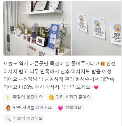 산전마사지 받고 너무 만족해서 산후 마사지도 받을 예정이에요~~