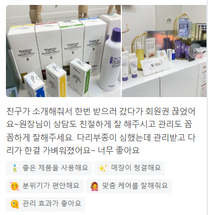 다리부종이 심했는데 관리받고 다리가 한결 가벼워졌어요~