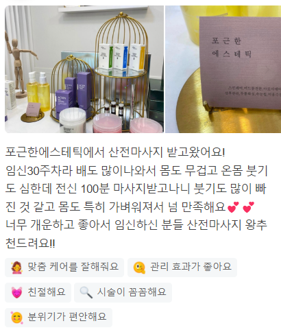 포근한맘에스테틱에서 산전마사지 받고왔어요!