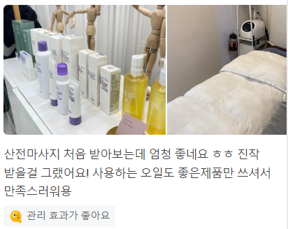 산전마사지 처음 받아보는데 엄청 좋네요 ㅎㅎ
